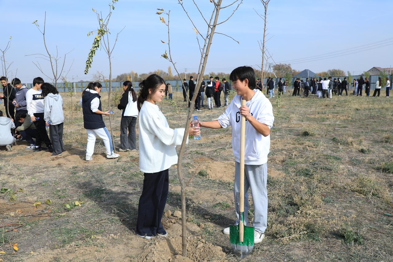 Еуразия агро-техникалық колледжінің 1-курс студенттері «Сәби» қайырымдылық қорының қолдауына ризашылық білдіру мақсатында ағаш отырғызу шарасына қатысты.
